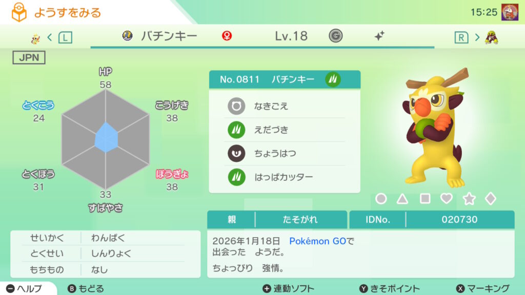 対象の個体をゲットした場合達成率がアップする。(おや名、ボールの指定は無し)