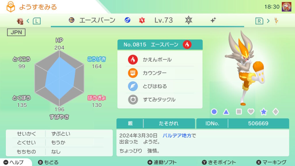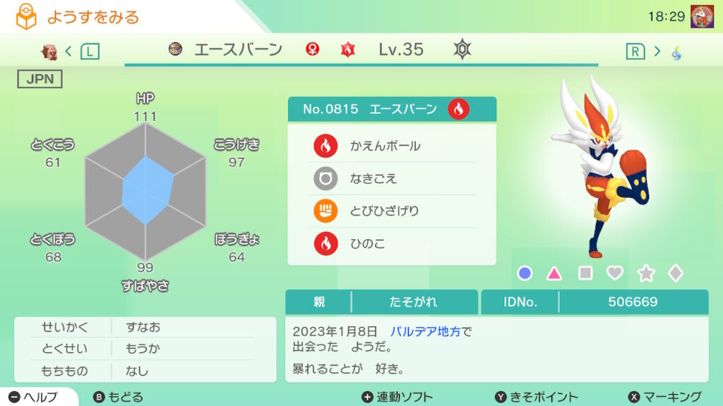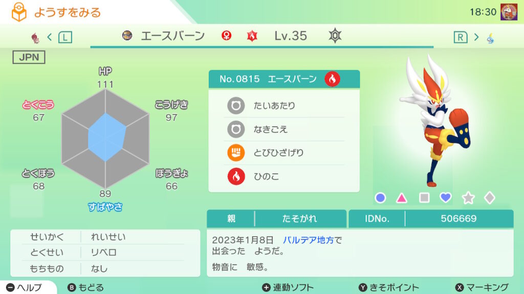 図鑑No.815 『エースバーン』の色違いの見分け方をソフト別に解説