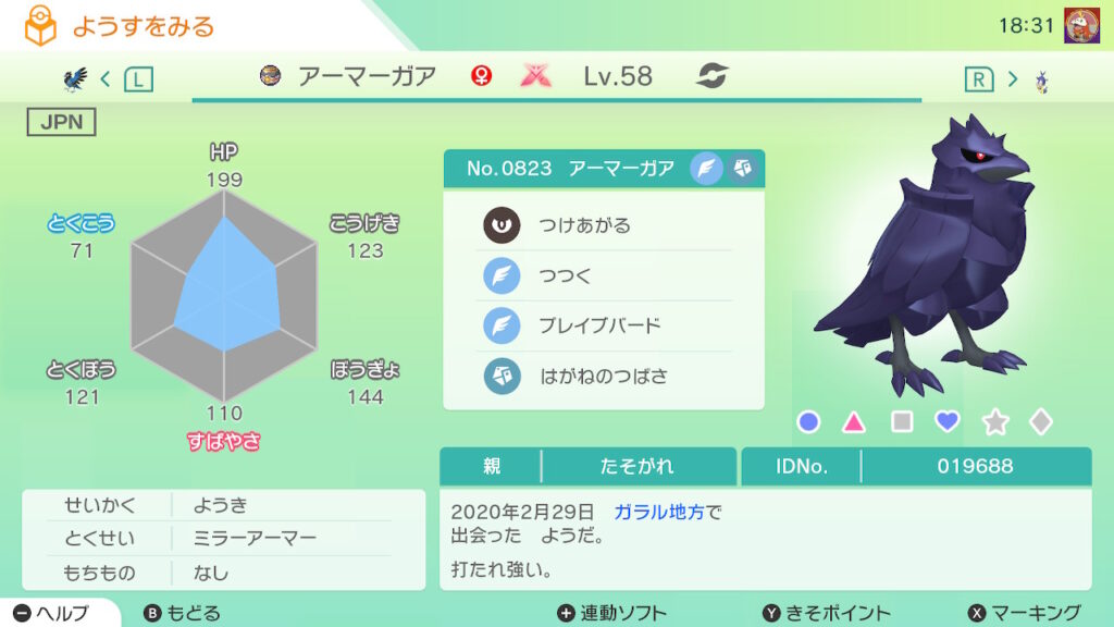 アーマーガアの進化系統