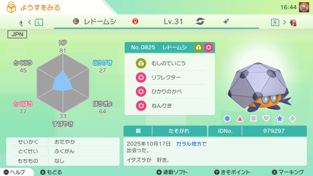 全てのゲット対象個体が”自己産かつゴージャスボール入り”の場合、達成率の横に「★」が付く。