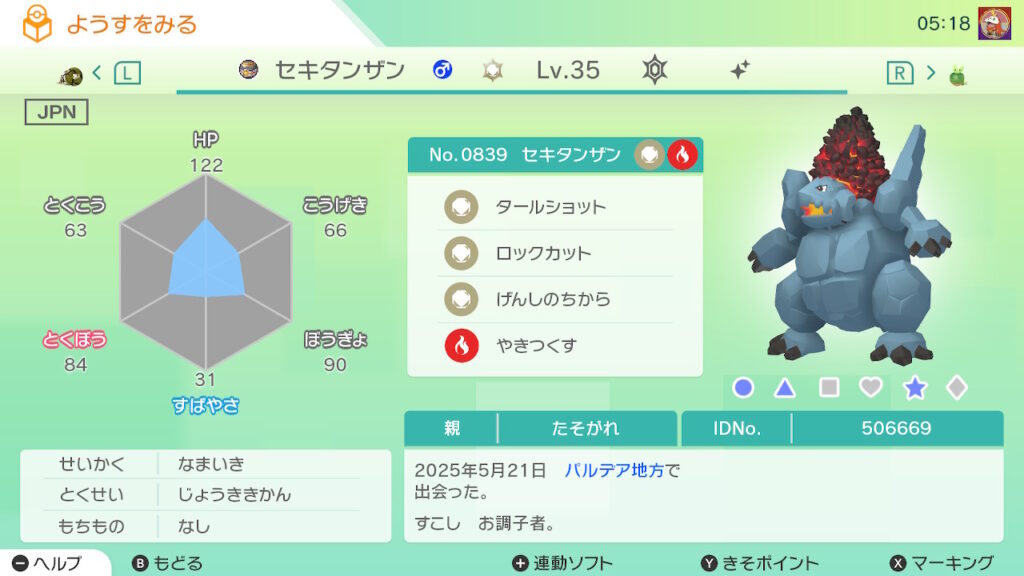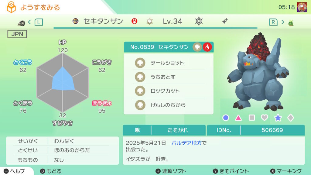 全てのゲット対象個体が”自己産かつゴージャスボール入り”の場合、達成率の横に「★」が付く。