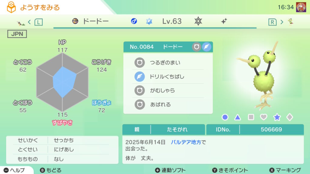 全てのゲット対象個体が”自己産かつゴージャスボール入り”の場合、達成率の横に「★」が付く。