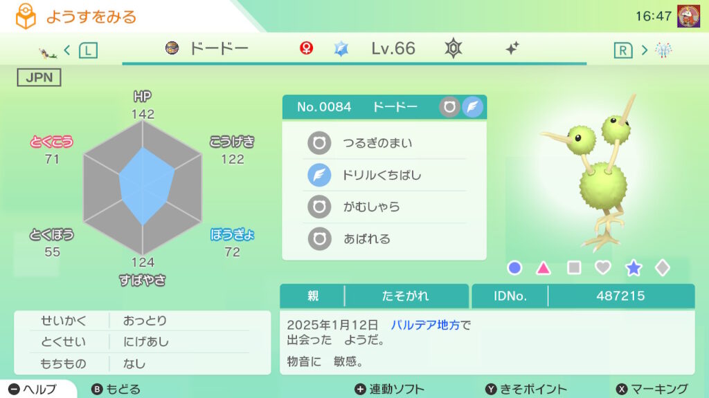 対象の個体をゲットした場合達成率がアップする。(おや名、ボールの指定は無し)