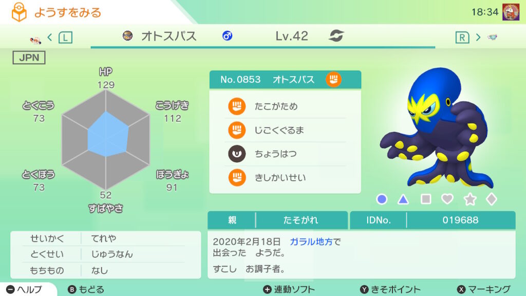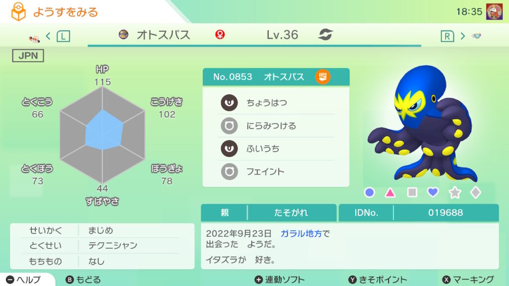 図鑑No.853 『オトスパス』の色違いの見分け方をソフト別に解説