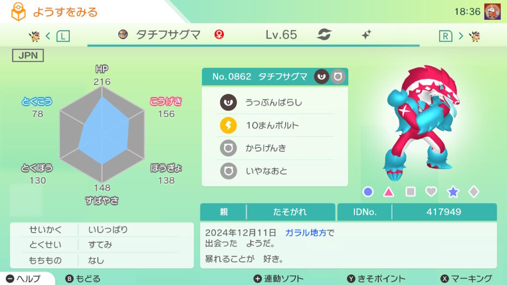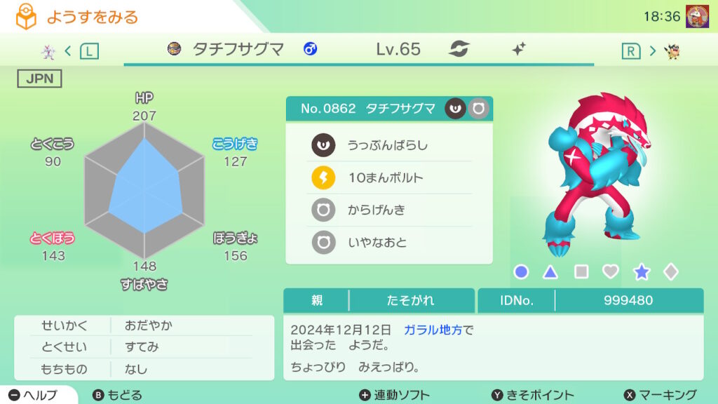 全てのゲット対象個体が”自己産かつゴージャスボール入り”の場合、達成率の横に「★」が付く。