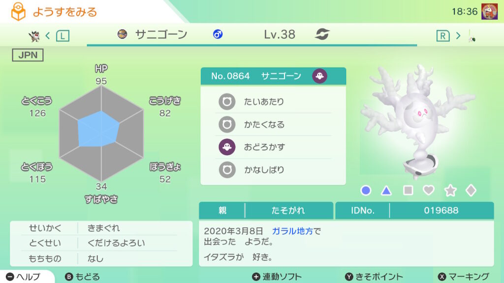 図鑑No.864 『サニゴーン』の色違いの見分け方をソフト別に解説