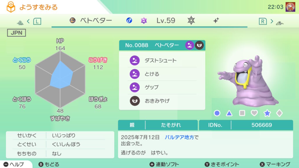 全てのゲット対象個体が”自己産かつゴージャスボール入り”の場合、達成率の横に「★」が付く。