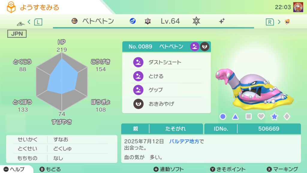 全てのゲット対象個体が”自己産かつゴージャスボール入り”の場合、達成率の横に「★」が付く。