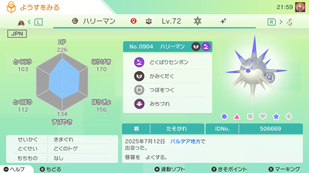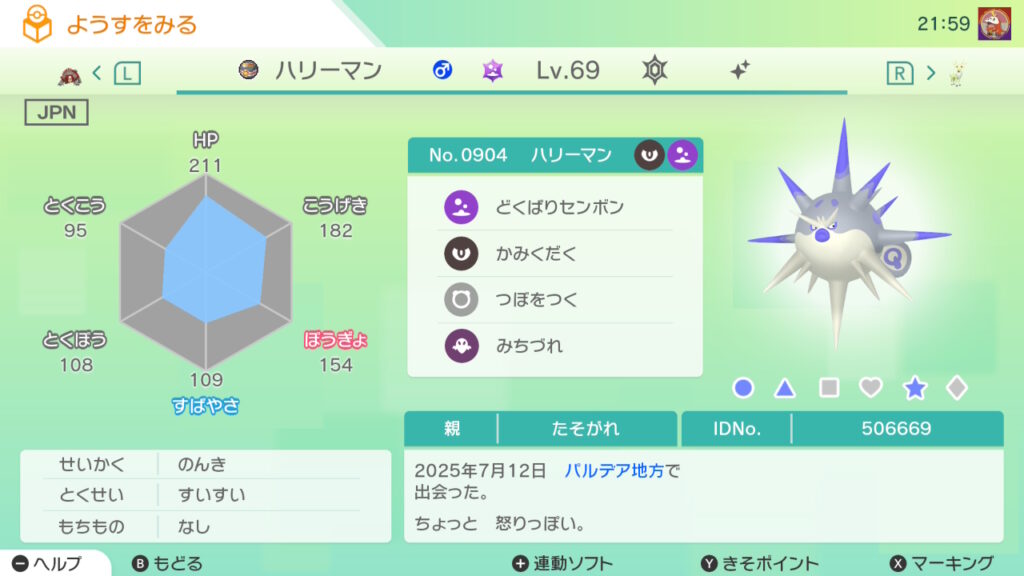 図鑑No.904 『ハリーマン』の色違いの見分け方をソフト別に解説