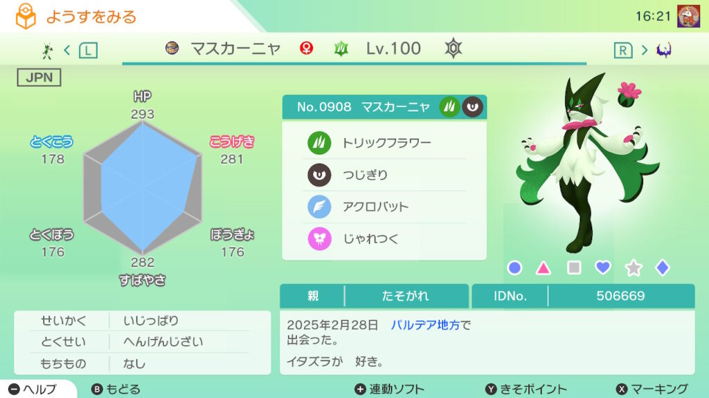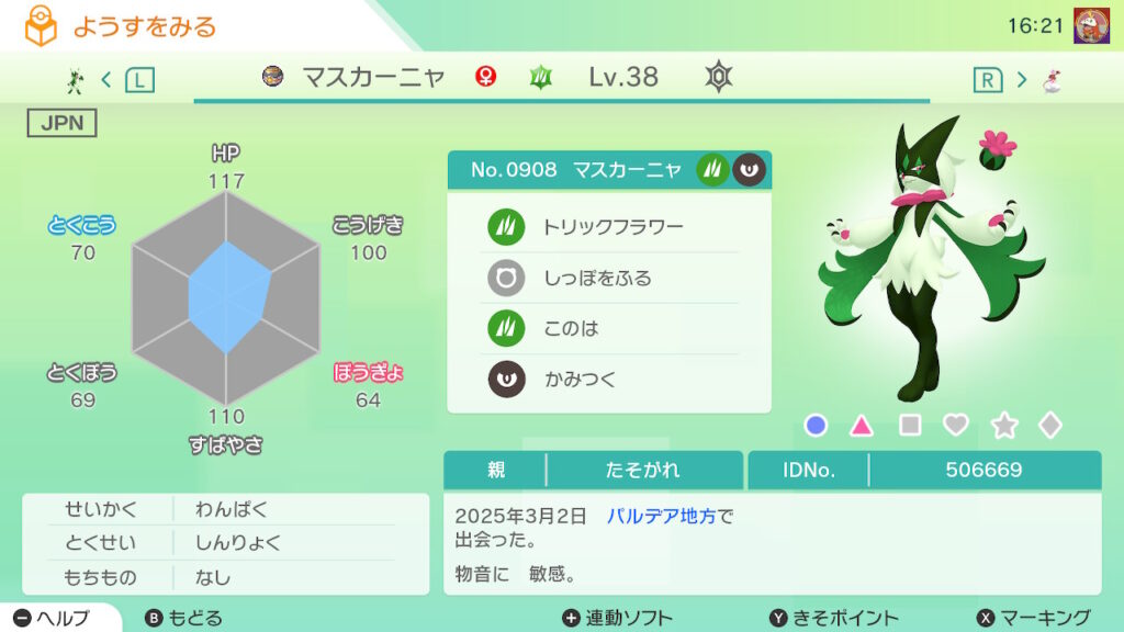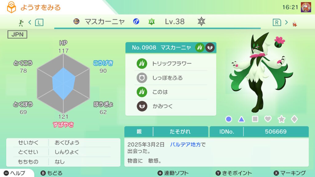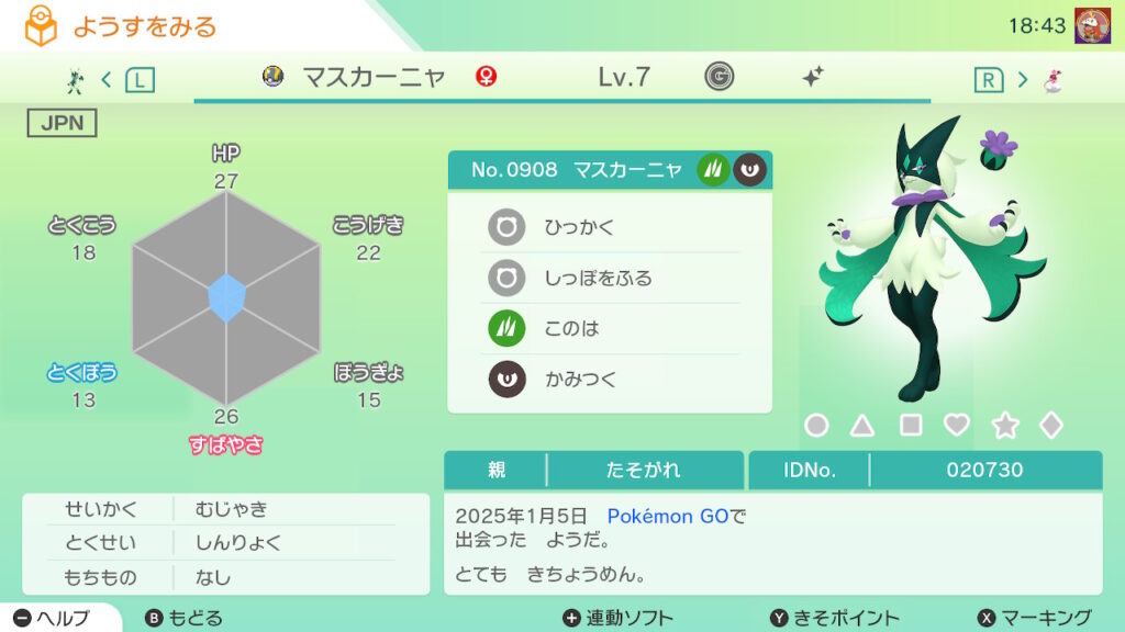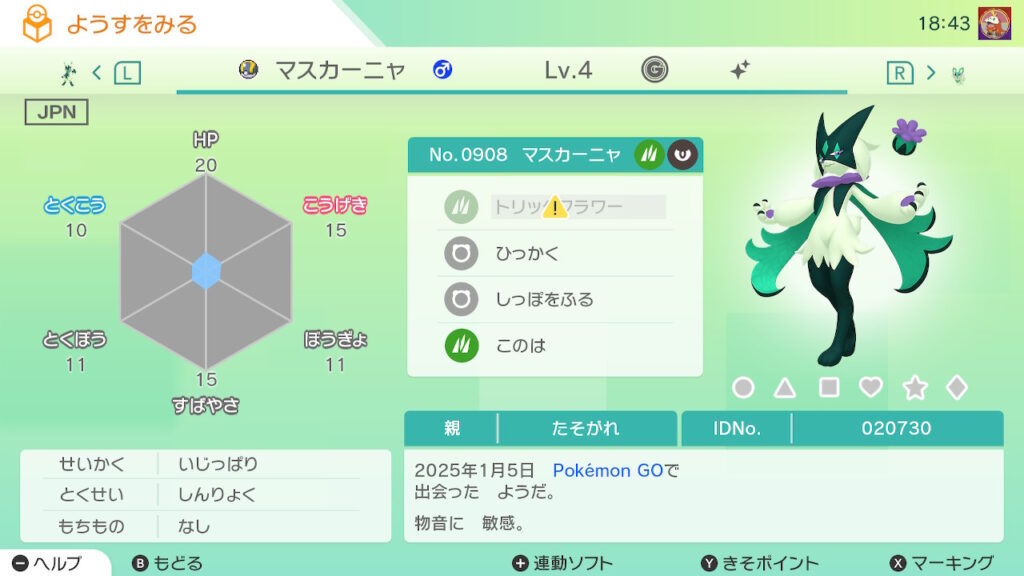 - 色違い(♀)がポケモンGO産のためゴージャスボールではない。