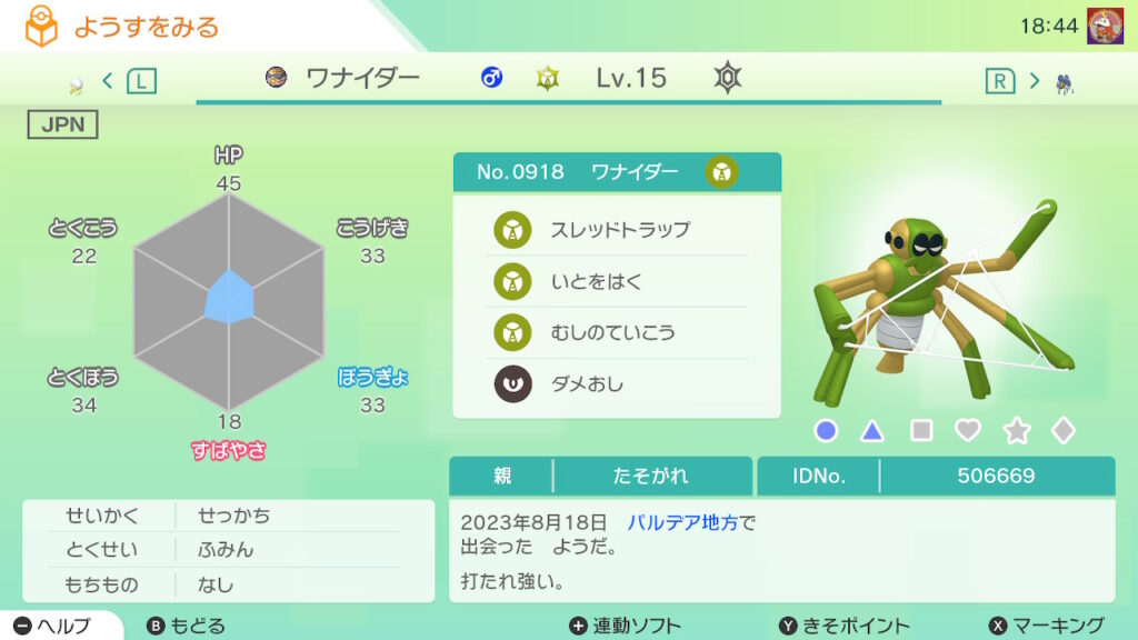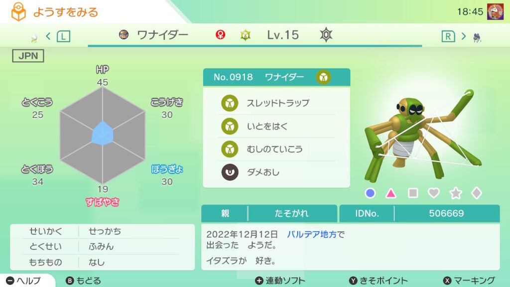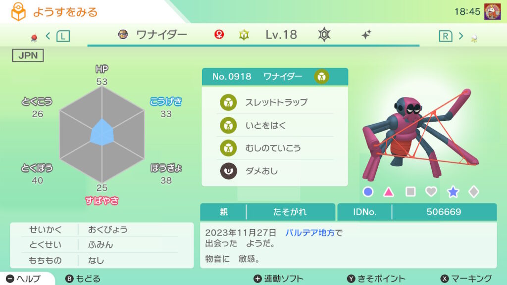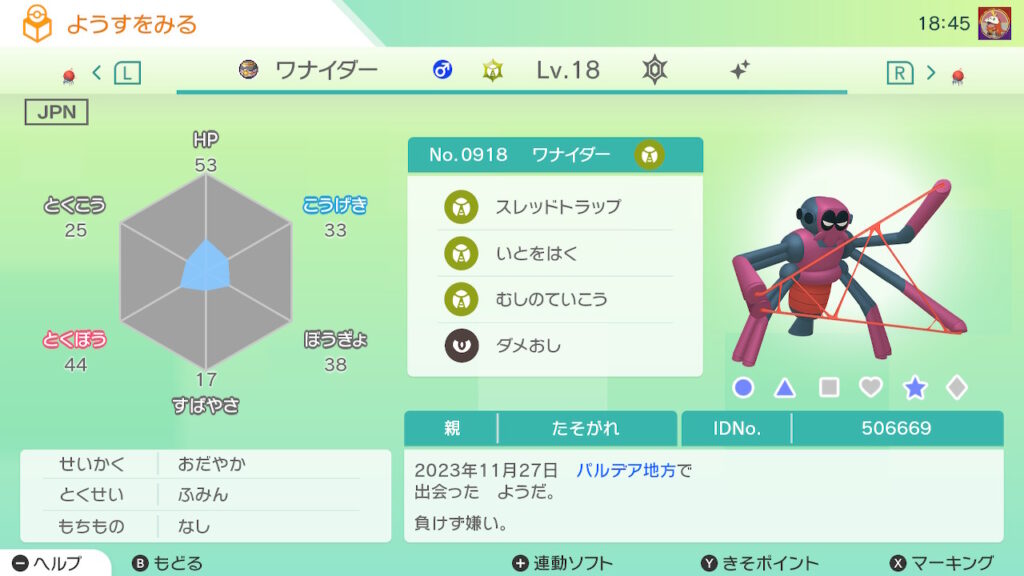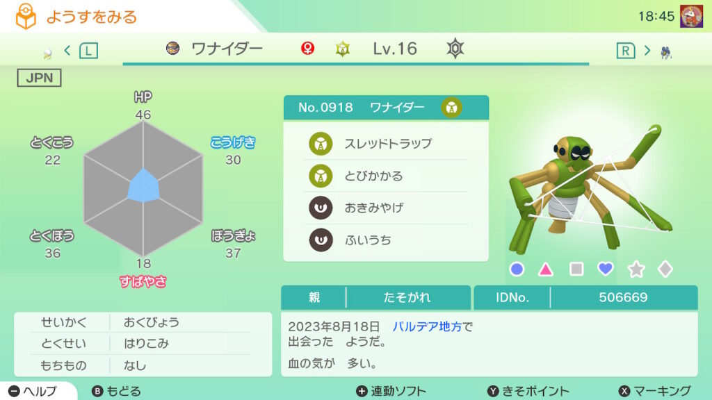 図鑑No.918 『ワナイダー』の色違いの見分け方をソフト別に解説