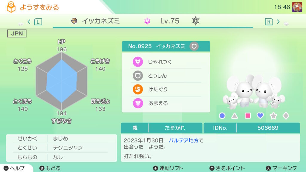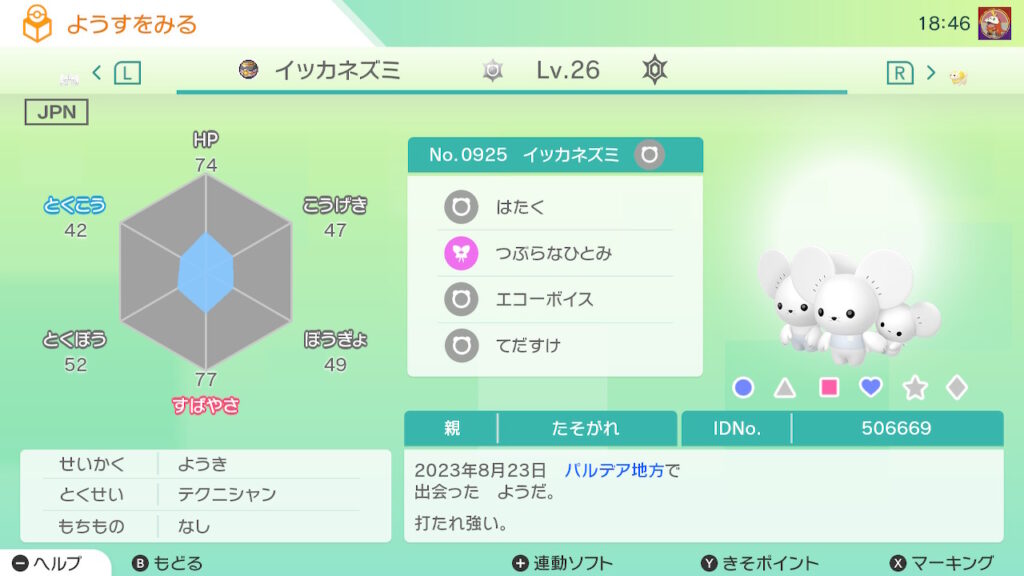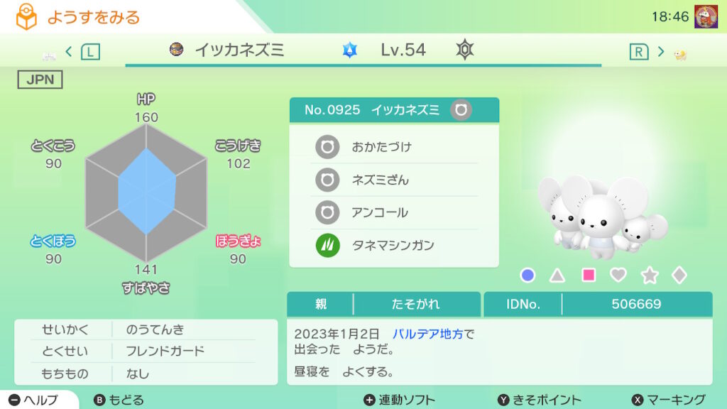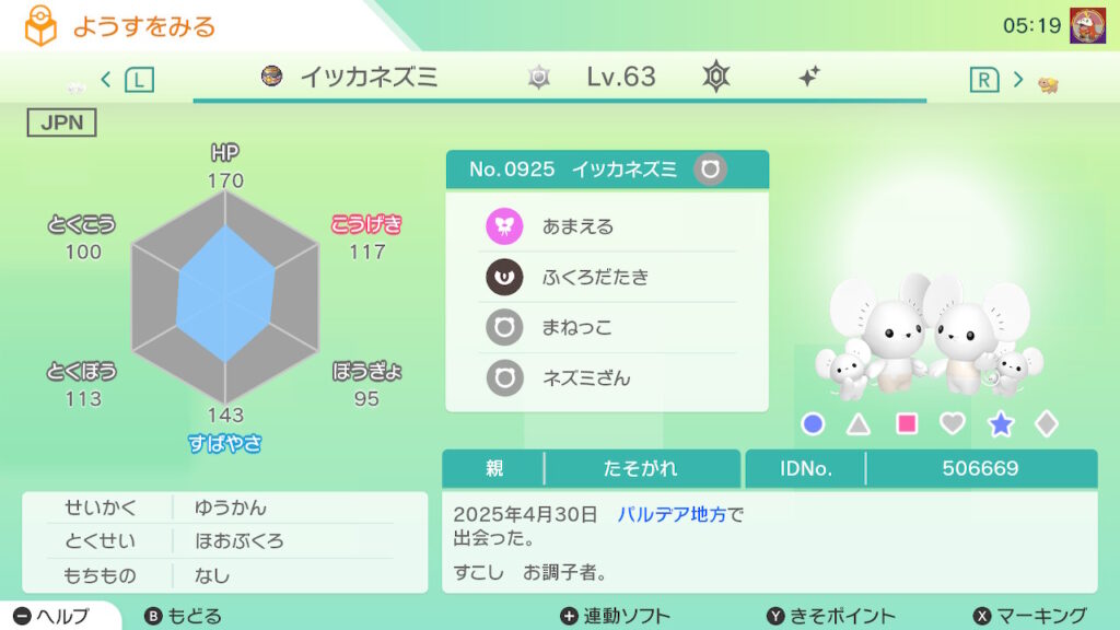 - イッカネズミ(3びきかぞく)の色違いを未所持。