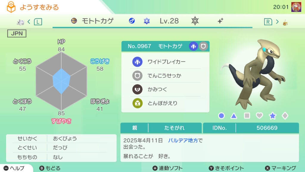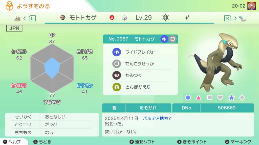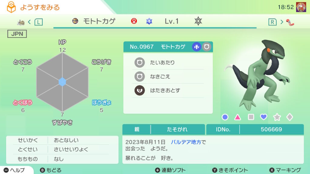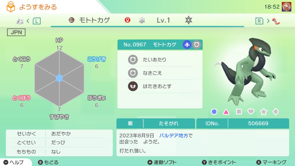 図鑑No.967 『モトトカゲ』の色違いの見分け方をソフト別に解説