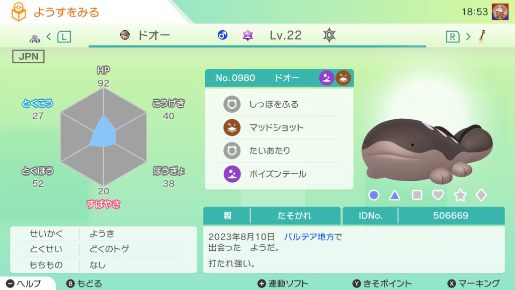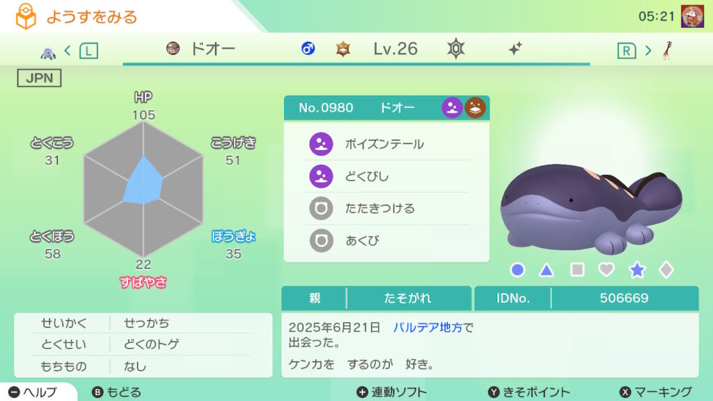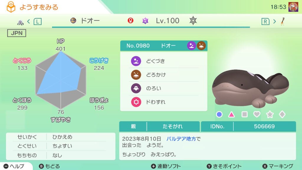 図鑑No.980 『ドオー』の色違いの見分け方をソフト別に解説