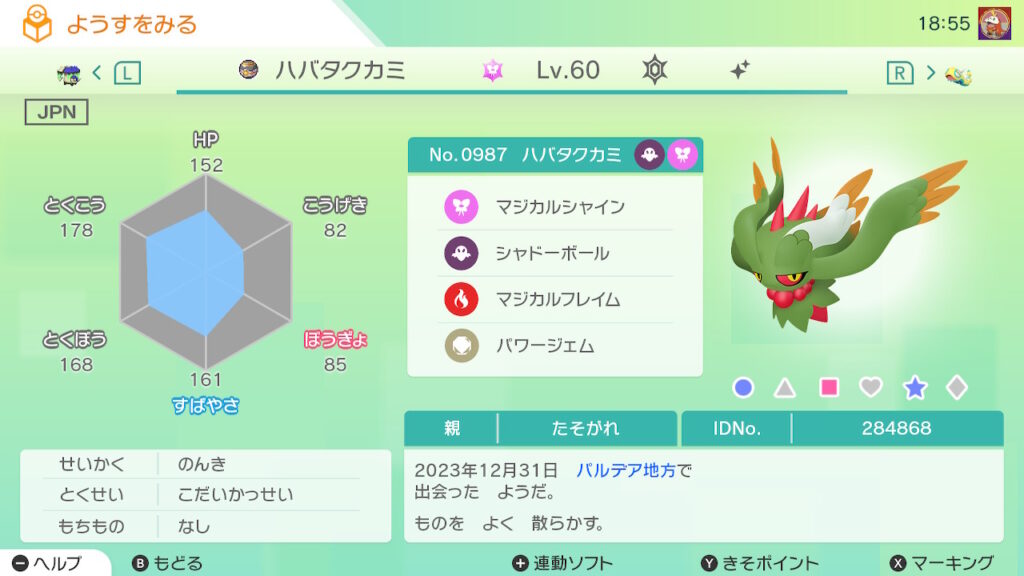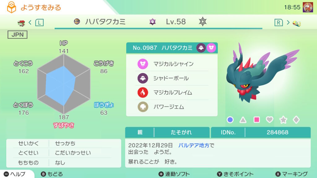 図鑑No.987 『ハバタクカミ』の色違いの見分け方をソフト別に解説