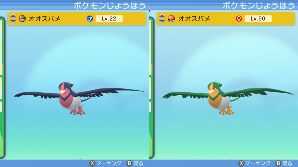 ポケモンの色違いをソフト別に比較した一覧表です。