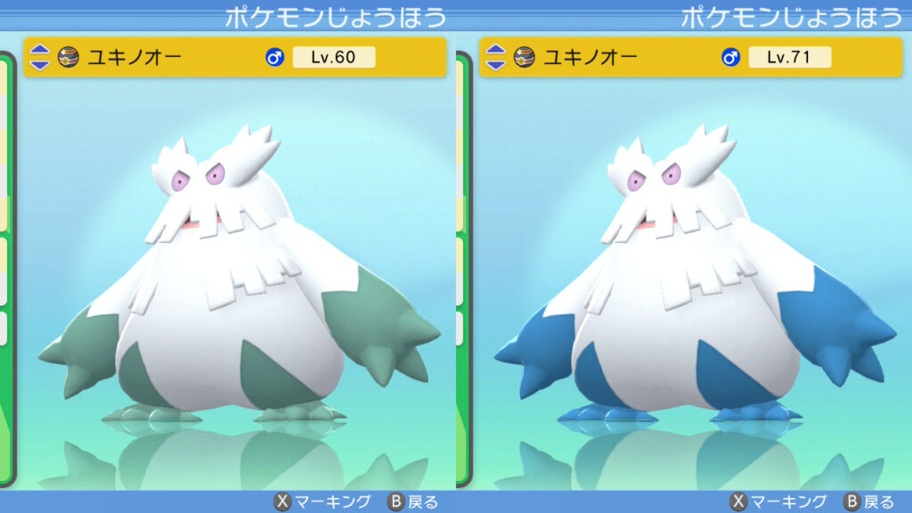 ポケモンの色違いをソフト別に比較した一覧表です。