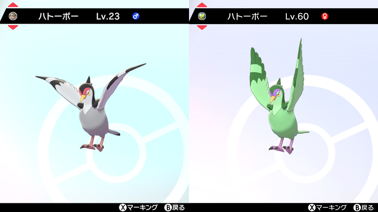 図鑑No.520 『ハトーボー』の色違いの見分け方をソフト別に解説